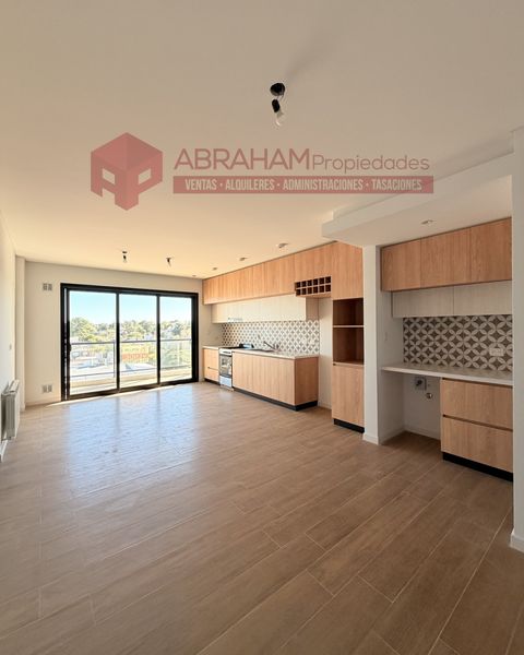 Cuenta con 2 dormitorios luminosos, 2 baños completos, y un cómodo living-comedor integrado con la cocina, generando un espacio moderno y práctico para el día a día. Desde el área social se accede a un amplio balcón al frente, ideal para disfrutar del aire libre y sumar luz natural a todo el ambiente. Incluye cochera cubierta.